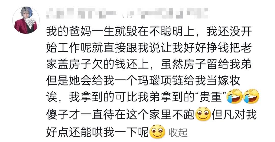 我爸妈为数不多的钱给我弟买房拿去创业,结婚给我陪嫁几张被子,只要他们在我面前说不高兴的,我就把这事儿讲出来酸他们