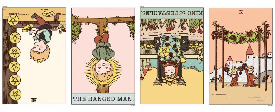 逆位星币八、正位吊人