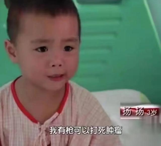 扬扬伸出小手,拍着妈妈的背,像平时妈妈哄他一样,一字一句地说:“妈妈你别难过,我有枪,我可以用枪打死肿瘤的,打死它,我就好了。”