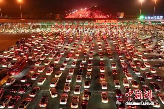 2月22日,正月初六,春节假期进入尾声,全国迎来返程客流高峰。位于安徽省全椒县、毗邻皖苏两省交界的吴庄收费站,迎来密集返程车流。