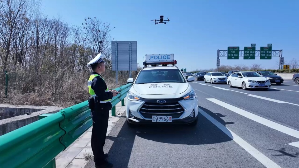 城乡道路、高速公路路段车流增势明显,宿州交警在重点路段采取定点值守、动态巡逻与无人机空中巡查相结合的方式,全面强化路面管控力度。