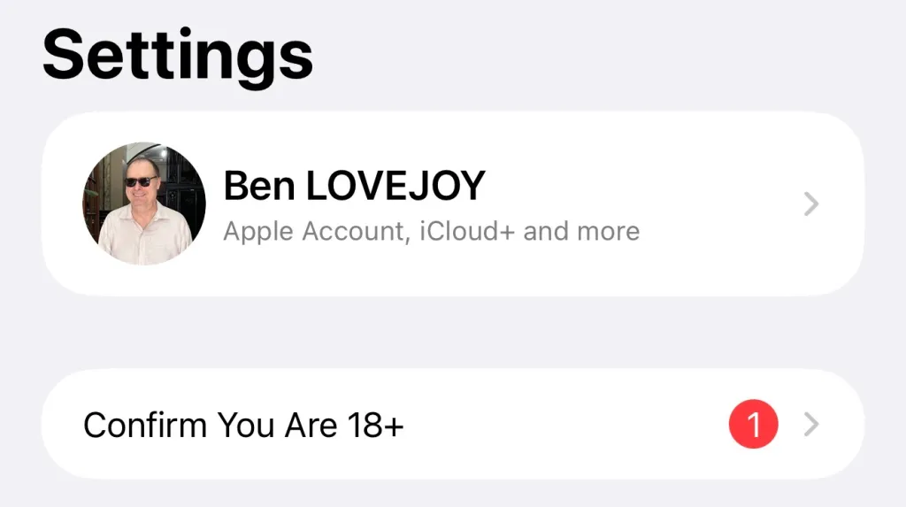 系统安装完成后,苹果将通过“设置”应用提示用户完成年龄验证,确认自己是否已年满 18 周岁。