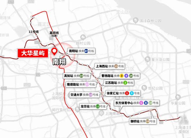 但南翔是11号线和嘉闵线的交汇点,本质是承担资源交汇的中心枢纽,在能级上就碾压其他外环附近板块。