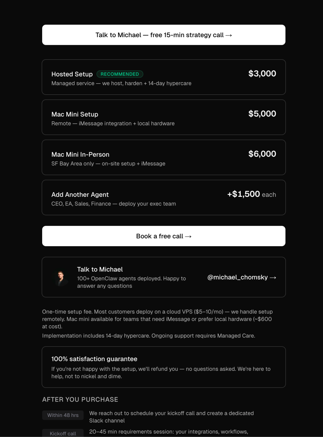 除了会交付给用户已经装好的 Mac 外,RoofClaw 还提供安装前的咨询和安装后的培训服务。