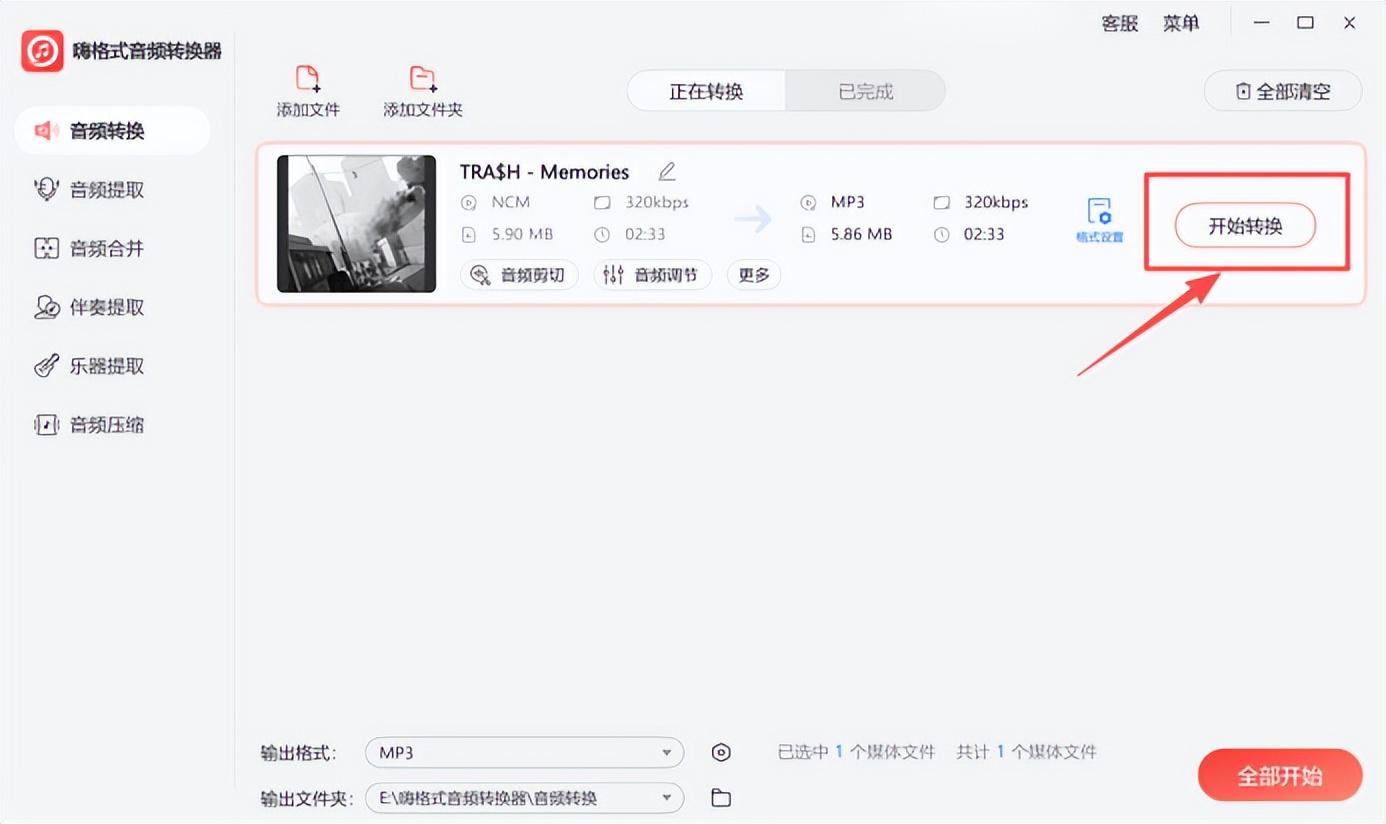 步骤2,点击“开始转换”,若你的音频文件体积较大,需要耐心等待。