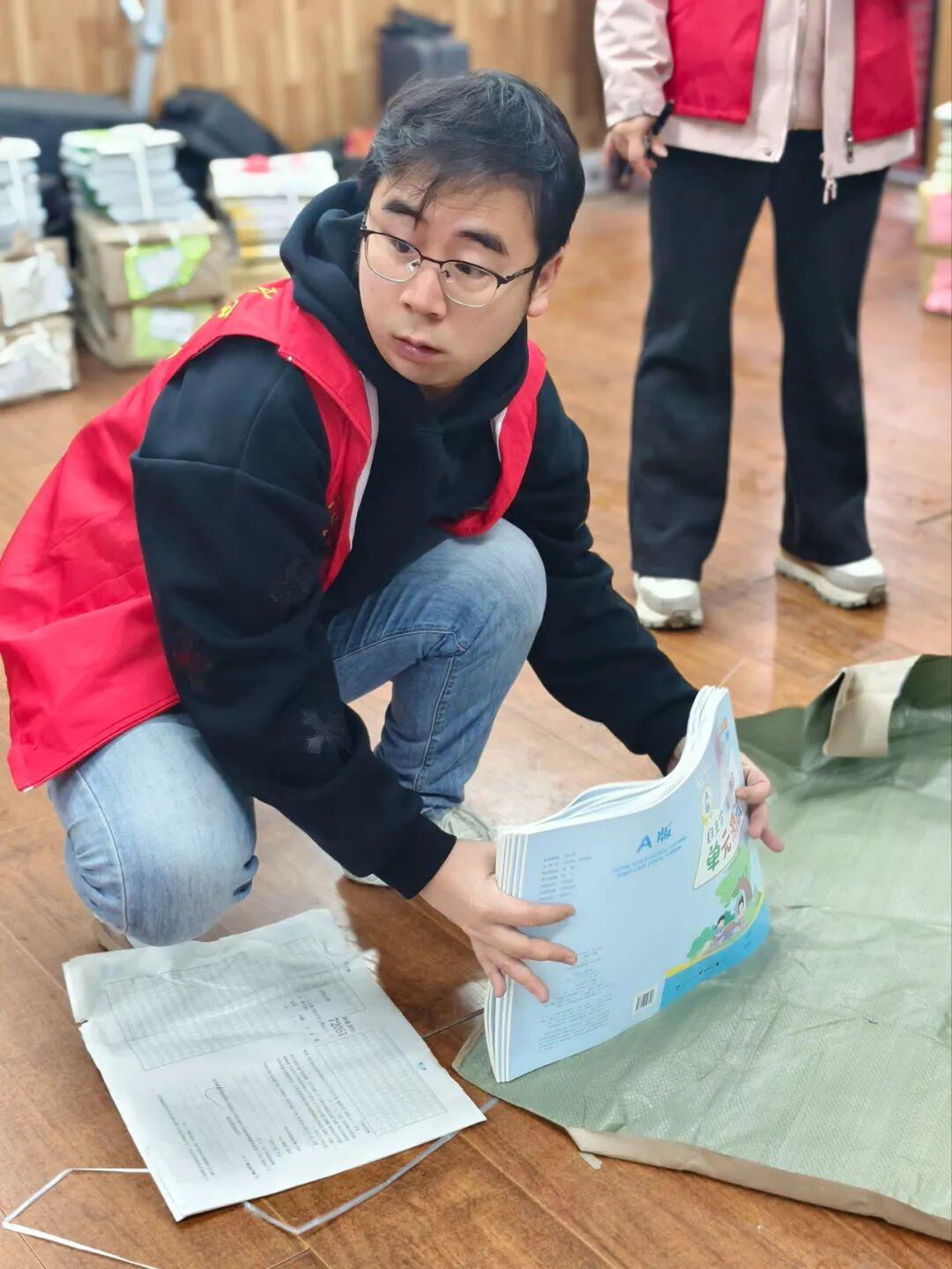 开学前夕,党员志愿者们提前到岗、分工协作,全身心投入开学准备工作。在教材发放现场,大家齐心协力、有序搬运,仔细清点、分类整理新学期课本与学习资料,确保每一本新书准确发放到学生手中,为新学期教学顺利开展筑牢物资保障。