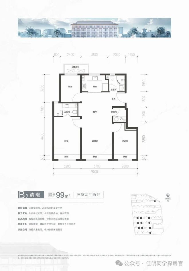 产品偏好:优先选 86㎡三居(双明卫、家政间),部分预算充足家庭选 99㎡三面宽户型。