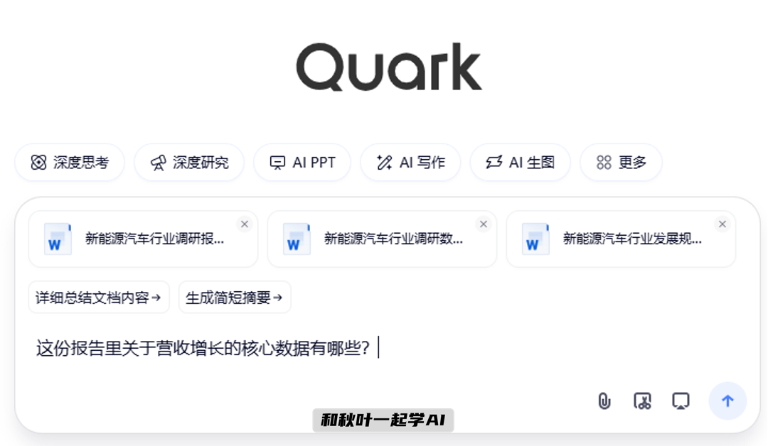 上传多份行业白皮书或竞品报告,让夸克 AI 帮你整理核心数据。