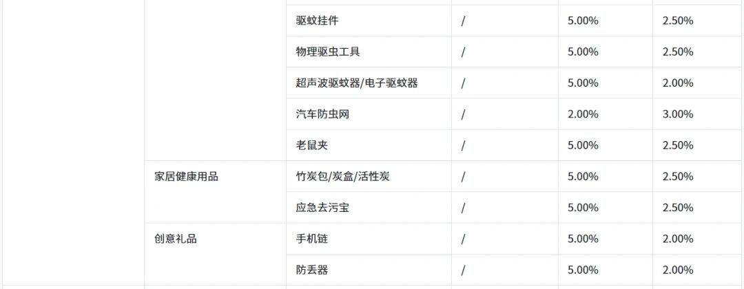 与收权形成鲜明对冲的,是居家日用、家装主材及大家电成为受益主力。国内小店的驱虫用品(如电蚊拍)从5%腰斩至2%,大家电更是全线从3%降至2%;全球购的食用油等民生品类也同步从3%降至2%。