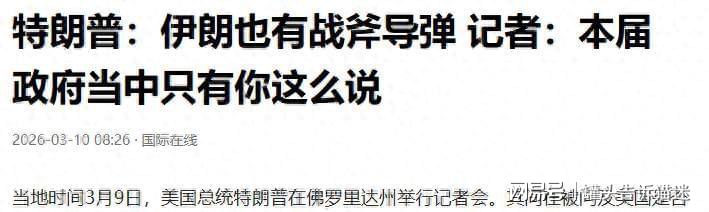随后美国记者非常直白地反问道:“你刚才的讲话,是否暗示伊朗拥有‘战斧’巡航导弹,在战争第一天轰炸了自己本国的小学?”记者还马上指出,特朗普是“唯一在本届政府中这么说的人,甚至国防部长也没有这么说。”。随后特朗普把话题圆回来,说自己对这件事“了解不够”。目前一切还处于调查当中。。