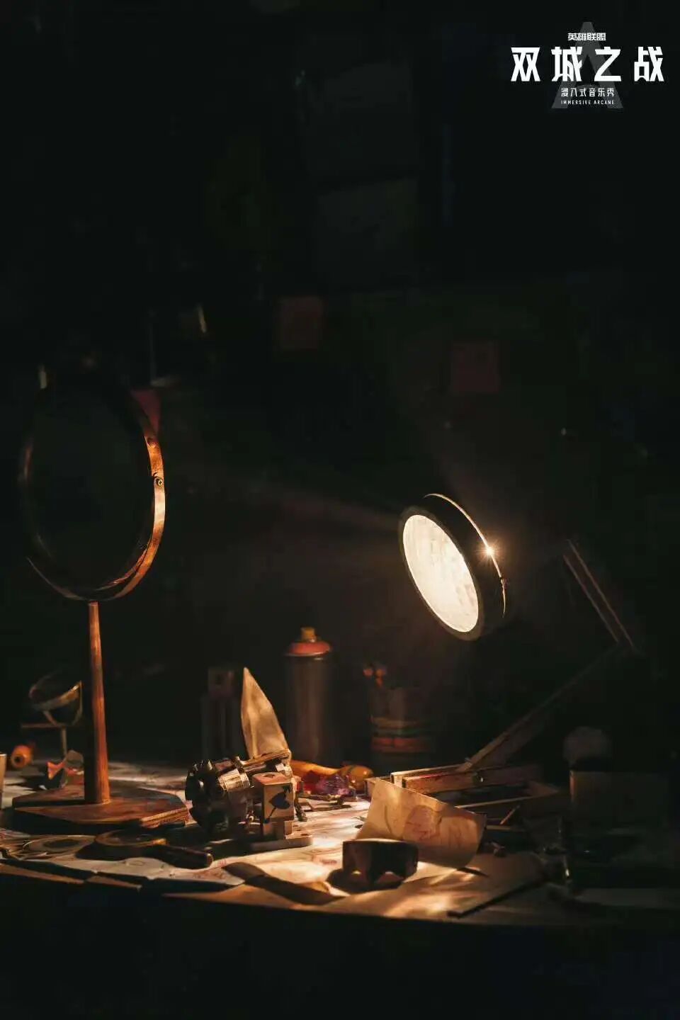浸入式音乐秀《双城之战》是腾讯和上海文广演艺集团、拳头游戏、哇唧唧哇、东方明珠、Punchdrunk等合作的一个前卫音乐剧 ,改编自著名的 《英雄联盟:双城之战》 动画。动画是以《英雄联盟》中, 金克丝 和蔚等角色为主,讲述皮城和祖安对立冲突的一段故事。