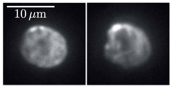 图 1:使用 Kinetix CMOS 拍摄的单个莱茵衣藻叶绿体自发荧光的变化。高灵敏度是需要检测荧光信号的微小波动。