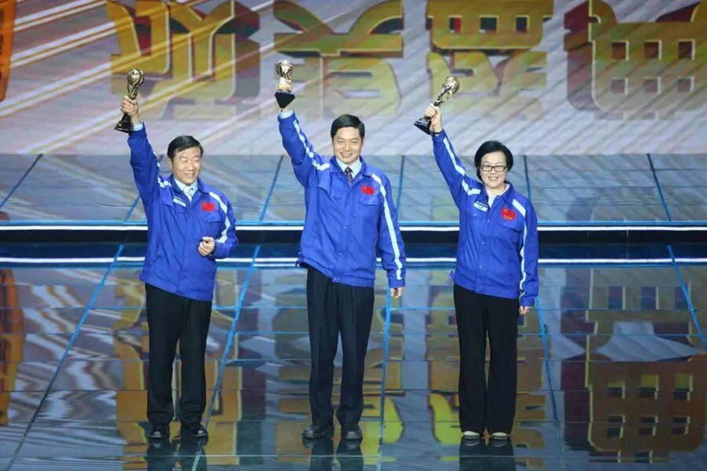 从左到右:北斗卫星导航系统工程运载火箭系统总指挥岑拯、北斗卫星导航系统工程卫星系统总指挥李长江、北斗卫星导航系统工程卫星系统总师杨慧