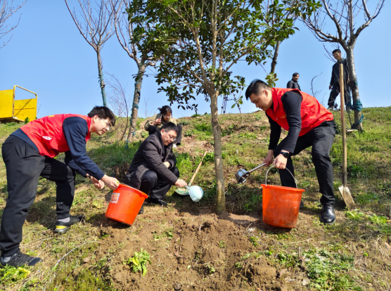 活动现场,一派热火朝天的劳动景象。参与人员热情高涨,分工明确,协作有序。有人负责精准挖坑,他们充分考虑江堤土质特点,严格把控坑穴的深度与间距,为树苗的顺利栽种打下坚实基础;有人则细心扶苗,小心翼翼地将橘子树、桂花树等树苗扶正入穴,并仔细校准苗子的垂直度,确保每一株幼苗都能茁壮成长;随后,众人合力回填土壤,分层踏实,进行固根,最后提来清水,为新栽的树苗悉心浇灌。一整套工序下来,每一棵树苗都稳稳扎根在江堤之上。