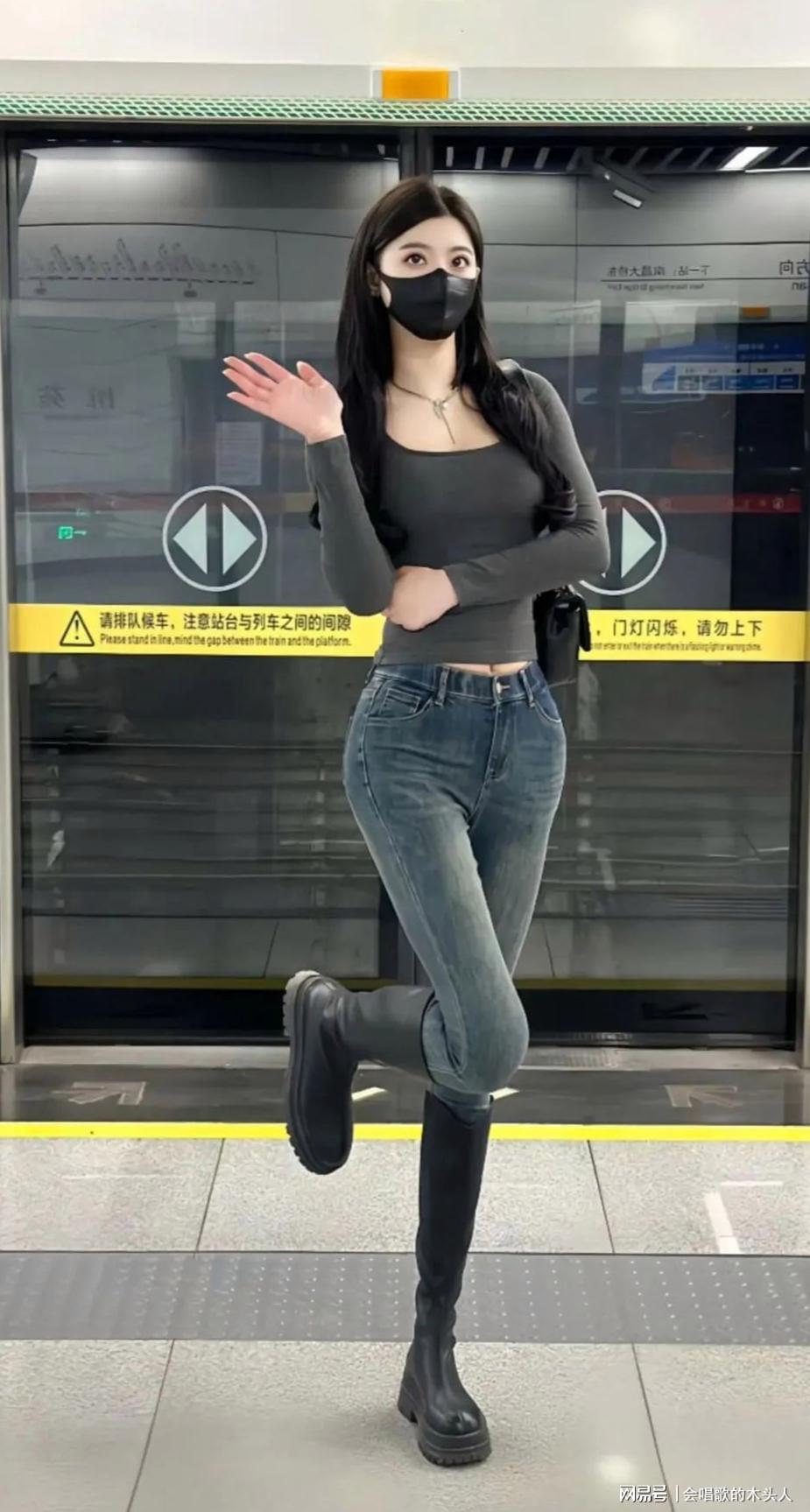我见过太多身高155cm左右的女生,穿上高腰紧身牛仔裤,配上一双小白鞋,视觉上直接长高5-10厘米,整个人的比例瞬间变得修长利落。哪怕是170cm的高个子女生,也能靠高腰紧身牛仔裤,进一步优化比例,穿出“胸以下全是腿”的效果。