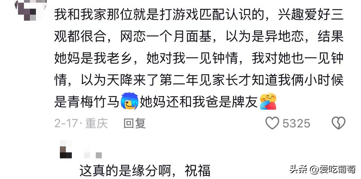 刚开始以为是异地恋,没想到其实早就认识了,而且对方家长还互相认识。