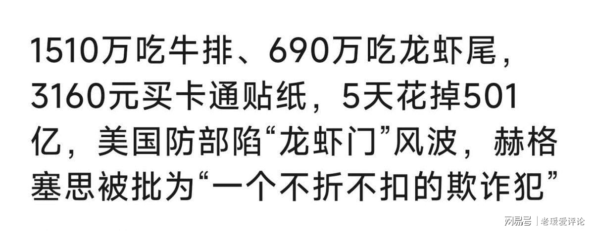 再联想到赫格塞斯上台前,曾经承诺要秉承节俭作风,对国防部进行改革,就让人觉得讽刺。最近频频出现和特朗普叫板的纽约州长纽森,立马在个人账号发帖讽刺他挥霍数百亿美元的税额。