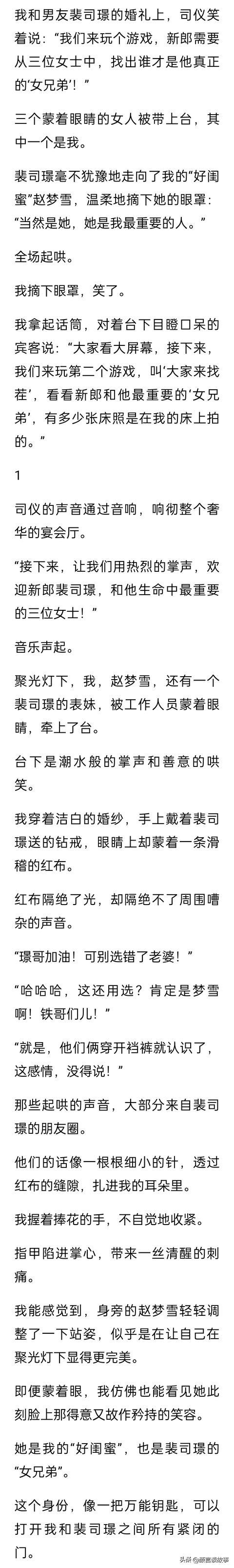 裴家太子爷,在自己的婚礼上,被新娘当众播放出 轨 视频。
