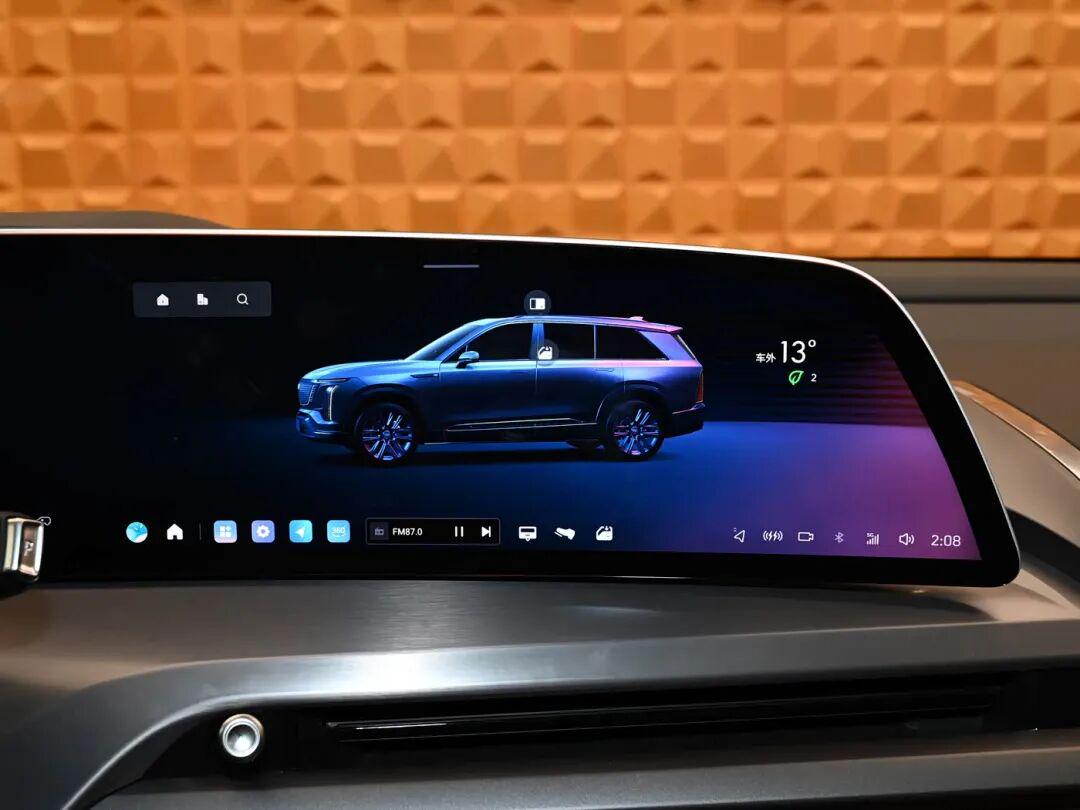 内饰方面,凯威德中控台几乎没有物理按键,配备33英寸曲面连屏,在中控通道区域配备8英寸的悬浮式触控面板,全车提供23扬声器AKG Studio音响系统。新车采用2+2+2的三排6座空间布局,车辆座椅采用依旧延续美式大沙发的设计质感,中部为皮质纹理缝线,两侧配备宽大的肩部与腰部支撑。座椅加热、通风和按摩等功能均集成在门板处,车辆二排还将配备中央通道区域的8英寸功能控制屏,座椅后方也提供单独的娱乐屏,并支持爱奇艺、QQ音乐等丰富的应用生态。作为凯迪拉克旗下首款搭载Momenta辅助驾驶的车型,也首搭舱内隐藏式激光雷达,将会支持高阶驾驶辅助/领航等功能。