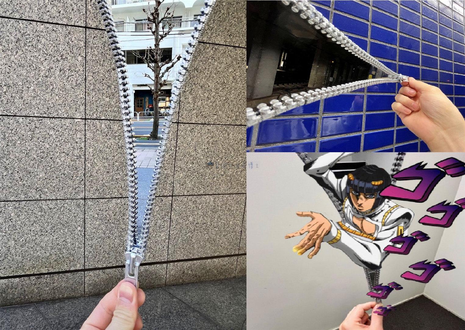这实在困难,其替身能力“钢链手指”能在任何触碰到的物体上开出拉链,通过拉链打通、割裂空间,实现各种出其不意的操作,现实中如何还原呢?博士相信绝大多数人都没有办法,或者说根本就没想过这种事情。不过,来自日本的创意网红ARuFa近期却给出了答案(我另写文章专门介绍了),他自制了“拉链造型镜子(镜子的边框上装上一条拉链)”,就完美搞定了“钢链手指”的效果。