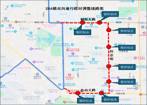 (十一)264路双向通行调整为解放大路-同志街-自由大路。