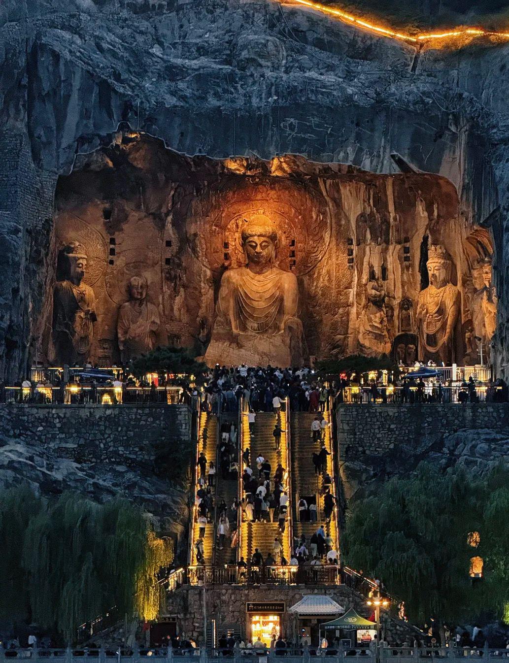 清晨抵达洛阳后,首站直奔世界文化遗产龙门石窟。这座开凿于北魏时期的皇家石窟,历经四百余年营造,现存窟龛两千余座、造像十万余尊。奉先寺的卢舍那大佛庄严肃穆,万佛洞内的小佛密密麻麻,伊河两岸的香山与龙门山隔河相望,山水与石刻相映成趣。建议游览时间三至四小时,细细品味千年石刻艺术的魅力。
