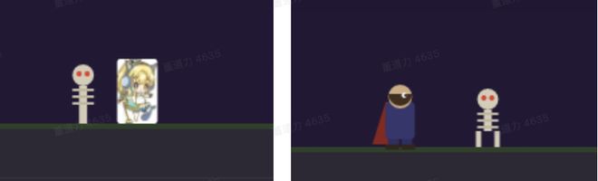 与此同时,TTM 也支持上传自定义的游戏文档和素材,让大佬也有发挥空间。比如,右图中的披风小人是 TTM 根据 prompts 自动生成,左图中的看板娘是用户上传素材。