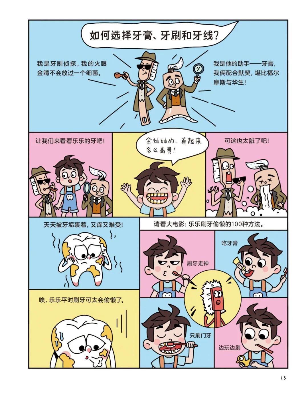 · 当孩子从漫画中看到牙齿会“吐槽”主人不讲卫生,会“生气”、也会“生病”;