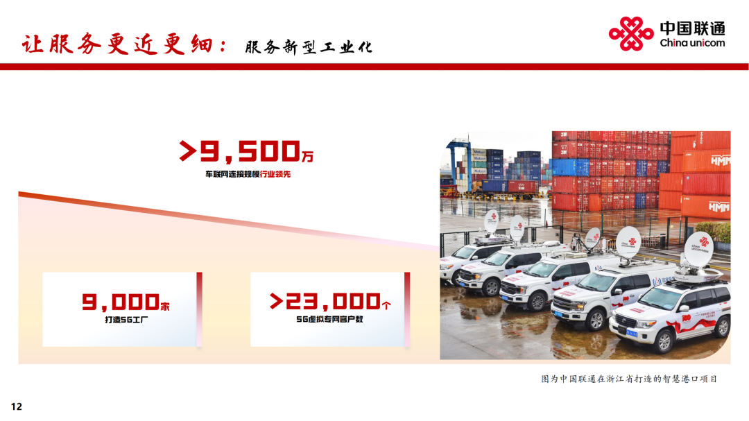 公司致力推进5G、AI等数字技术融合创新,打造差异化产品。在公众市场,透过打造家庭智能中枢 “智家通通” ,持续提升数智生活新体验,云智产品服务3亿多用户,收入同比增长超过11%。在政企市场,深度服务新型工业化与数字政府建设。升级 “5G+工业互联网” 产品体系,格物工业互联网平台连续入选国家A级双跨平台。加强车联网一体化营运,服务超过9,500万车辆。在数字政府领域,推出经济运行大模型、智能热线、 “基层通” 平台等重点产品,助力政府经济调节、政务服务、基层治理水平提升。