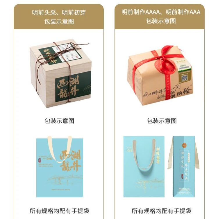 今日开团,我还为大家争取到了每个规格都赠送手提袋的福利,298元的明前AAA也同样方便大家送礼。