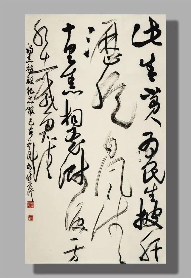 胡秋萍的草书艺术以"大气磅礴、奇宕率意"著称。她早年从颜柳入手,后深耕"二王"帖学,尤其倾心于同乡先贤王铎的雄浑书风,将王铎的涨墨技法与连绵气势化为己用。其草书线条老辣劲健,善用长锋羊毫,在翻卷腾挪间展现出"风樯阵马"般的奔放气势,被沈鹏先生赞为"既有'二王'笔法,又兼张旭、怀素雄劲挺健之风姿,并具王铎浑厚大气、墨色淋漓之势"。