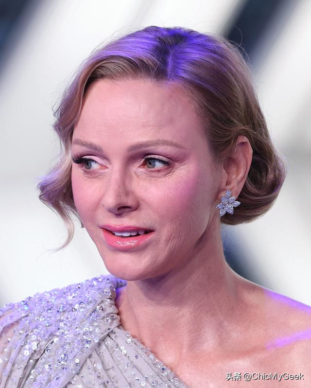 做为摩纳哥王室核心人物的夏琳亲王妃,这晚的造型也完美贴合了这个与众不同的舞会主题。