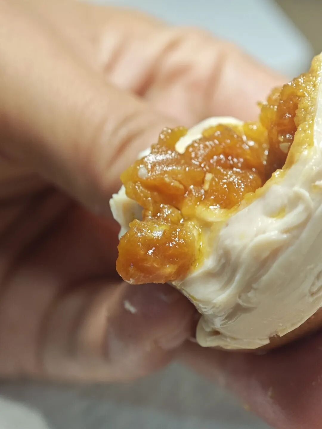 鸡蛋一打开里面直流油绵密与颗粒感兼备的沙软口感,像麻酱一样!啧啧啧!口水止不住了