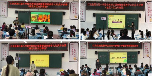 2026年3月24日、25日,江安县第21届教师讲课赛暨课堂教学大比武活动,城北教育督导区小学数学常规组半决赛在阳春镇白沙小学校举行。来自城北督导组的13所小学的13名数学教师参加了本次片区半决赛。