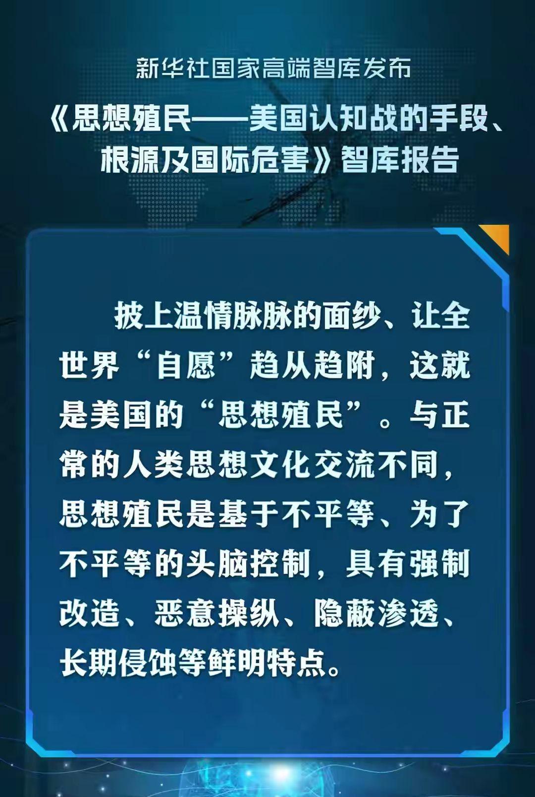 新华社国家高端智库报告《思想殖民——美国认知战的手段、根源及国际危害》,2025年9月