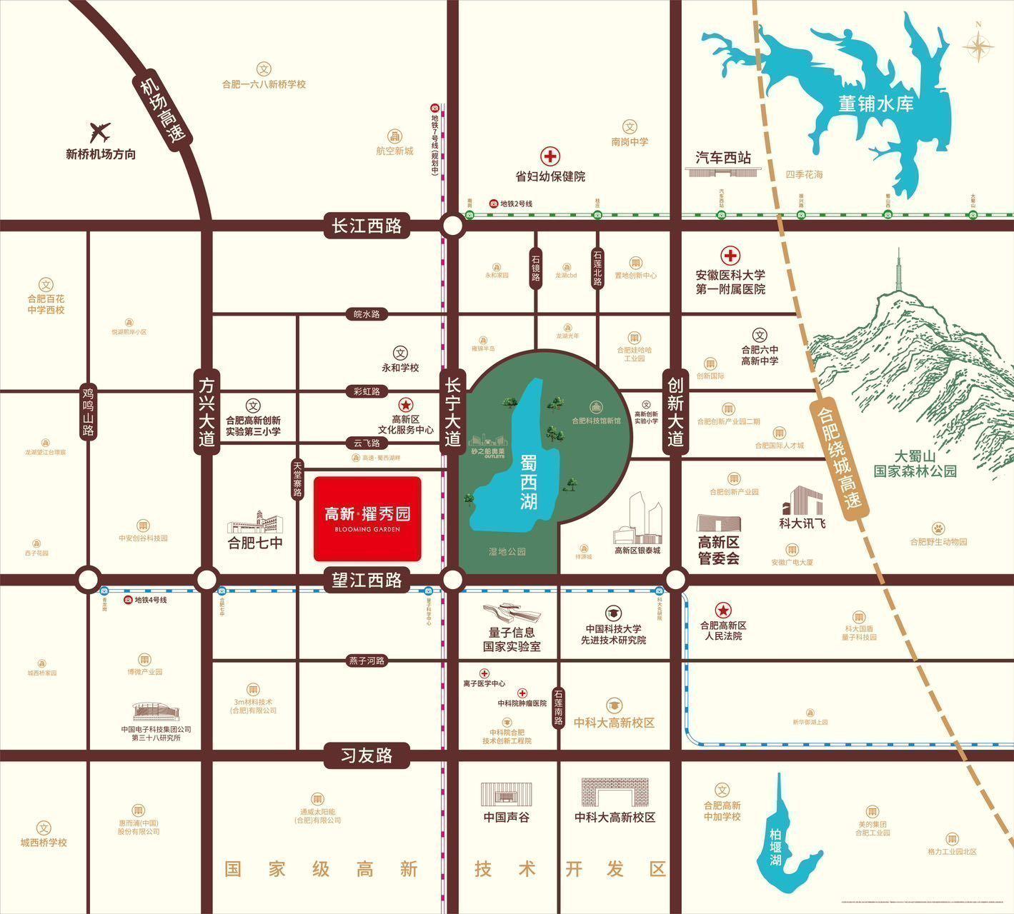 作为合肥国家高新技术产业开发区的核心腹地,擢秀园所处的望江西路—天堂寨路交汇板块,堪称高新区“黄金十字坐标”。这里汇聚了中国科学技术大学先进技术研究院、中科院合肥技术创新工程院、科大讯飞总部、京东方AMOLED生产基地、蔚来中国总部等逾2000家高新技术企业,常驻科研人员超15万人,区域GDP占全市比重连续五年超18%。交通维度上,地铁4号线(科大先研院站)直线距离约600米,未来规划中的12号线(建设中)将在项目东南侧设“蜀西湖站”,双轨交汇强化通达效率;望江西路为城市快速路,15分钟直达政务区天鹅湖,20分钟抵达老城核心区;创新大道、习友路、玉兰大道构成三横三纵立体路网,私家车出行无堵点。教育配套方面,项目西侧紧邻合肥高新火炬中学(九年一贯制)、东侧规划一所48班优质公办小学(高新教育集团统筹建设),步行10分钟覆盖幼儿园至初中全学龄段;医疗资源则依托安徽省立医院西区(三甲)、高新区综合医院(在建三级综合医院)提供全周期健康守护。
