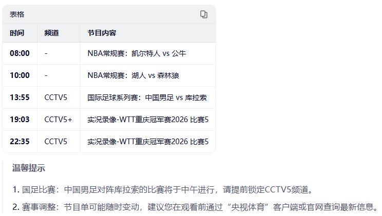 - 19:03实况录像-WTT重庆冠军赛2026 比赛5 (CCTV5+)