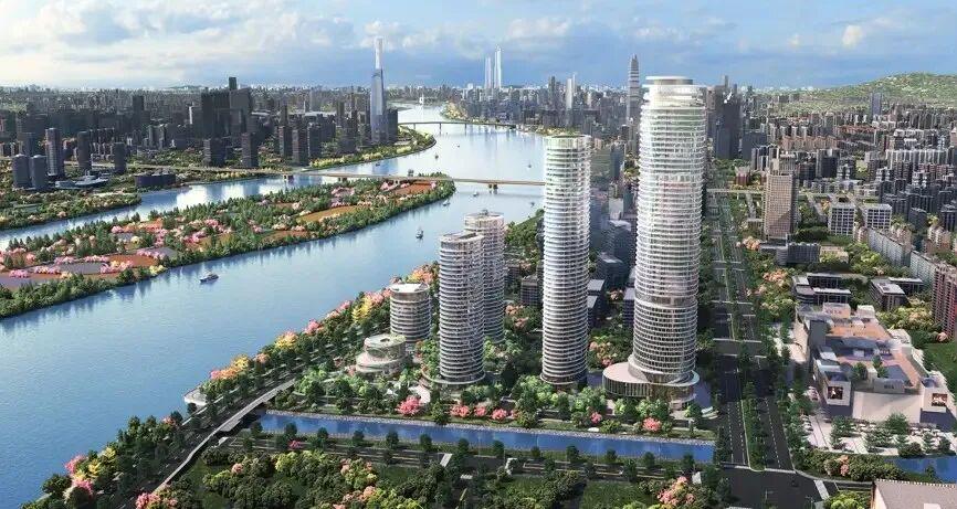 广州·鹏瑞1号项目占地约5.42万㎡,总共规划有6栋建筑,涵盖了顶奢公寓、传奇奢华酒店、湾颂·艺术中心、广州·深湾会、湾汇高定商业中心等等。