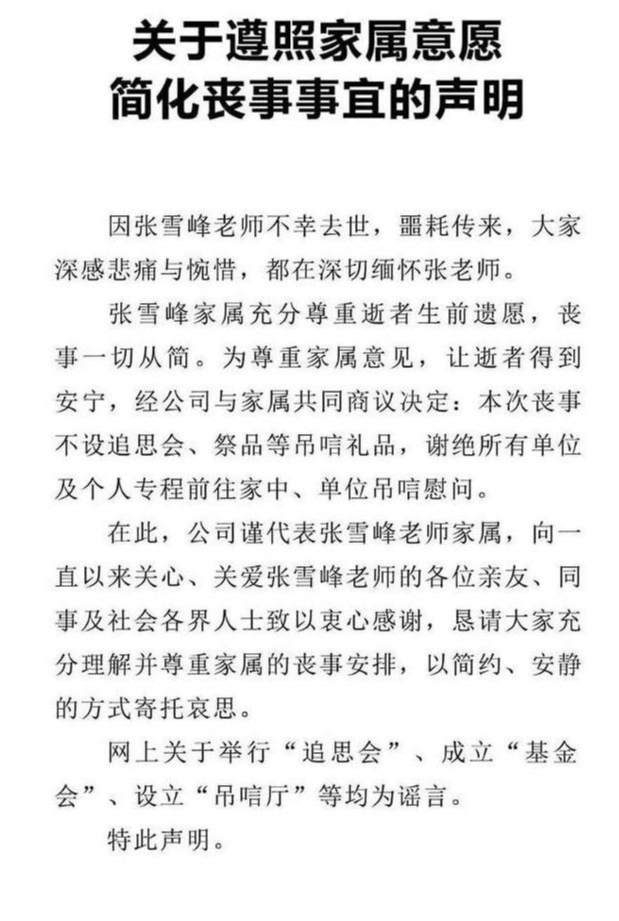 按照家属意愿,丧事一切从简,3月28日上午会在苏州殡仪馆举行追悼会。