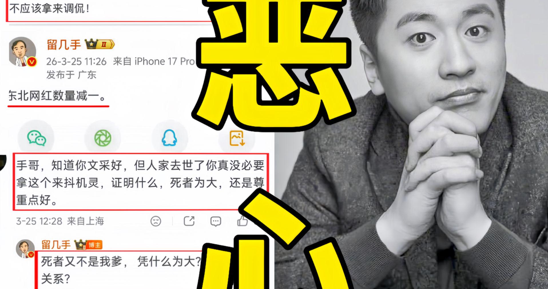 但他选择主动闯入这场集体悲恸,用最疏离的措辞解构死亡,以最锋利的玩笑切割尊严,亲手将自己钉上道德审判台。