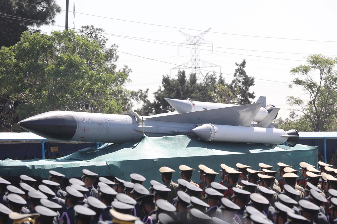 2025年4月,伊朗在阅兵式上展示导弹。新华社