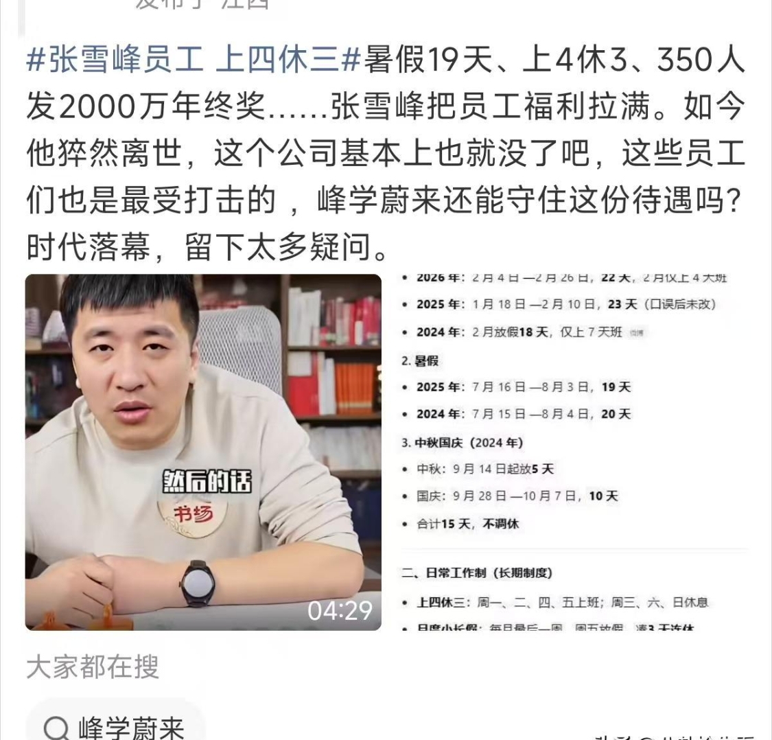 说白了,所有的福利都是张雪峰自己扛下来的。员工能准点下班能休长假,他这个老板却连喘口气的功夫都没有。
