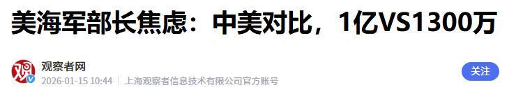 美国海军部长费兰的态度更为坦率。他在2026年1月召开的水面舰艇协会年度研讨会上明确指出:中国制造业从业人口规模达1亿人量级,美国同类劳动力仅约1300万;2022年中国处于建造阶段的各类船舶总数约为1800艘,美国同期仅有5艘在建。他毫不讳言,美国所有在列造船项目均陷入“工期严重延误、成本失控膨胀”的困局。