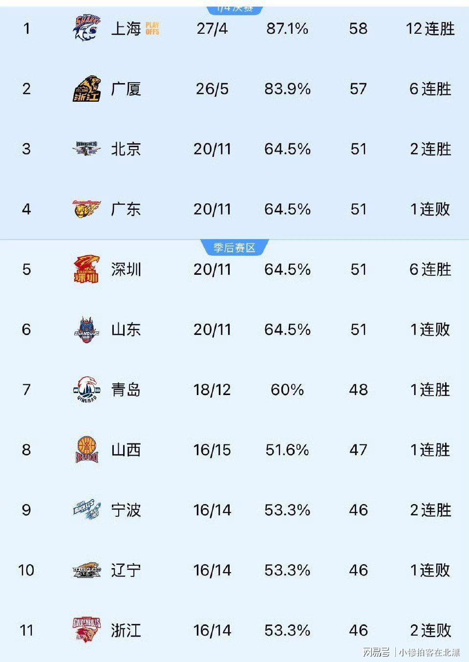 至此,北京广东深圳山东四支队伍战绩相同,均为20胜11负,分别位列积分榜3-6位。目前CBA联赛从第三名到第十一名,积分从51分到46分,差距并不大,竞争太激烈。山东高速男篮需要全队发力,顶到克里斯归来才能大杀四方!