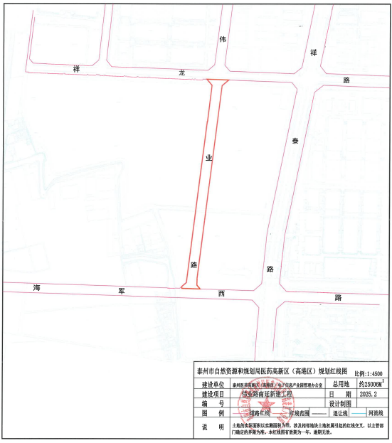 2025年12月25日,泰州市自然资源和规划局发布“关于伟业路南延工程建设用地规划许可证”。