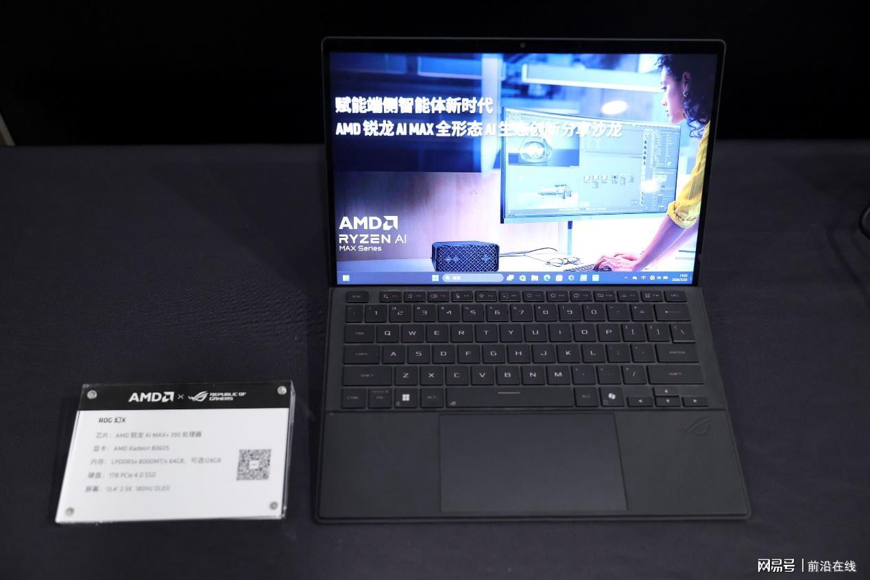现场展示了众多的AMD锐龙AI Max系列产品,涵盖一体机、Mini工作站、笔记本、移动工作站和水冷工作站等齐全的产品形态,并演示了AMD锐龙AI Max系列推动算力下沉,赋能具体垂直行业的不同场景实践和成功应用。下面首先来看一下现场的解决方案展示。