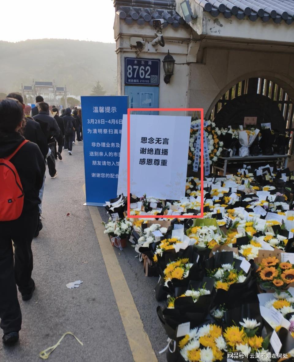 估计是怕话太委婉,有的人看不懂,在追悼会开始之前,还特意在门口贴了一张显眼的告示:谢绝直播,感恩尊重。