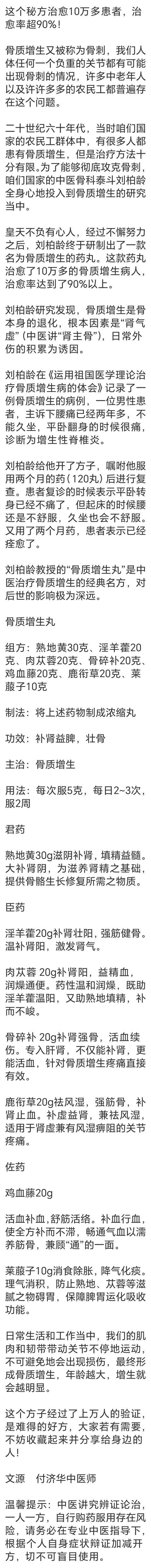 光补还不够,增生带来的疼痛得缓解。于是加了能强筋骨、通经络的材料,既能补肝肾壮骨头,又能疏通气血,针对那些刺痛、酸痛的地方慢慢调理;还有些材料能赶走身体里的湿寒之气,缓解关节的僵硬和酸痛,特别适合那些既体虚又关节不舒服的人。