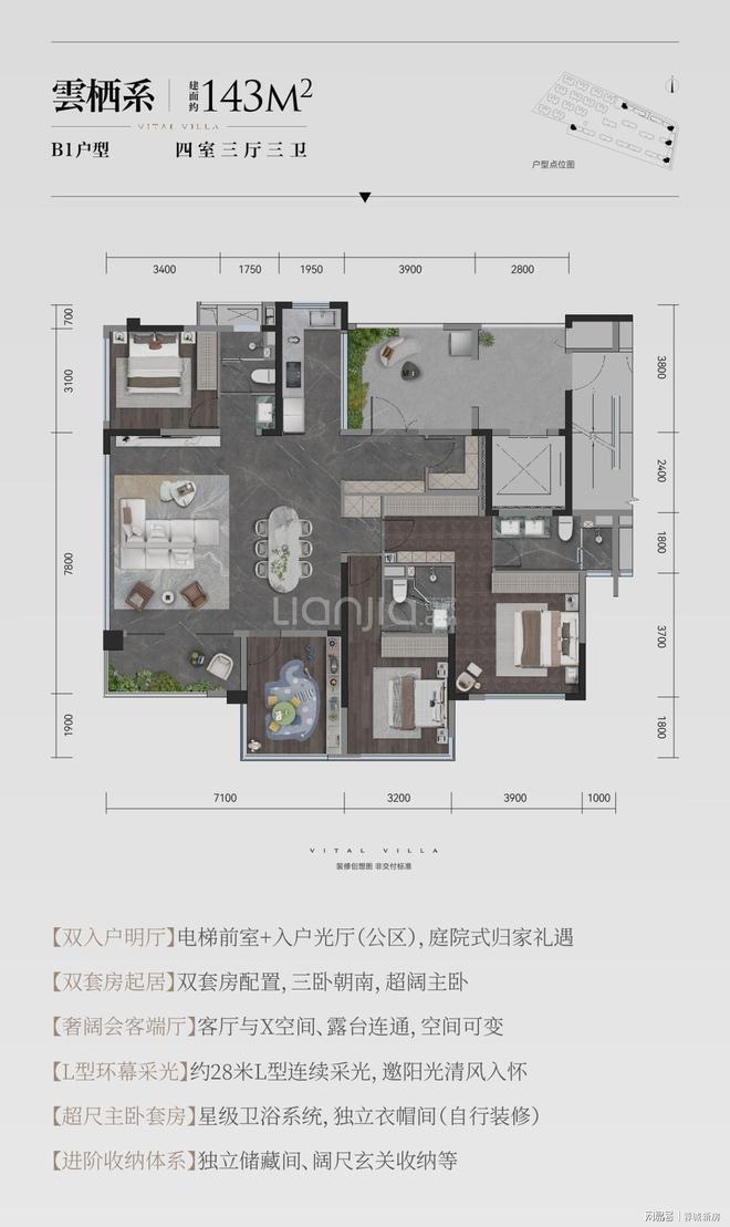 以建面约139㎡的明星户型为例,它不仅做到了四室三厅三卫的双套房布局,更颠覆性地融入了三个花园空间。这不仅是空间的延展,更是情感的容器——父母的莳花弄草,太太的下午茶,先生的冥想天地,孩子的探索乐园,都有了安放之处。