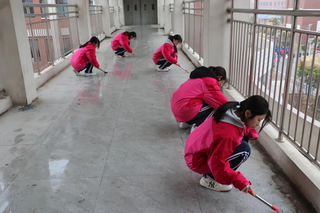 捡拾垃圾、擦亮雕像、清理宣传栏、清除陈旧水泥……同学们从身边小事做起,用实际行动扮靓校园、传承精神。